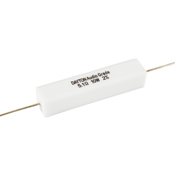 Dayton Audio DNR Series "Audio Grade" resistors are used in Zobel networks and fixed L-Pad attenuator circuits for tweeters. Nickel-chromium elements, a high thermal conductivity ceramic core, and welded construction all contribute to their low-noise performance.Product Highlights