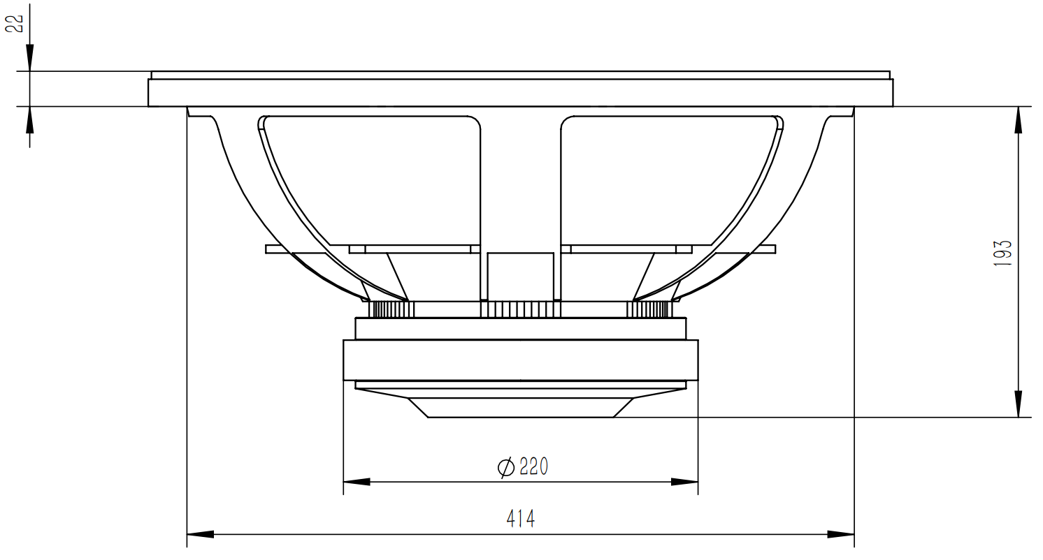 - Under spider and rear periphery venting allow for a cooler running voice coil