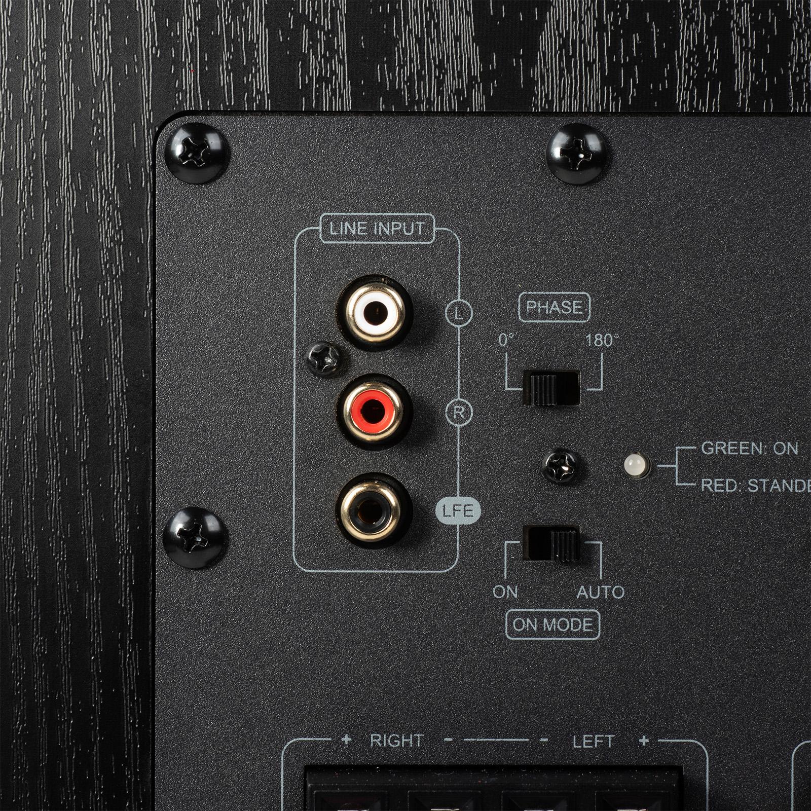Auto-on functionality puts the subwoofer into standby when not in use and powers it on automatically when a signal is detected. The crossover knob and phase switch help blend seamlessly with your main speakers, while the volume control lets you fine-tune the bass so it’s just right for your room and your listening style.